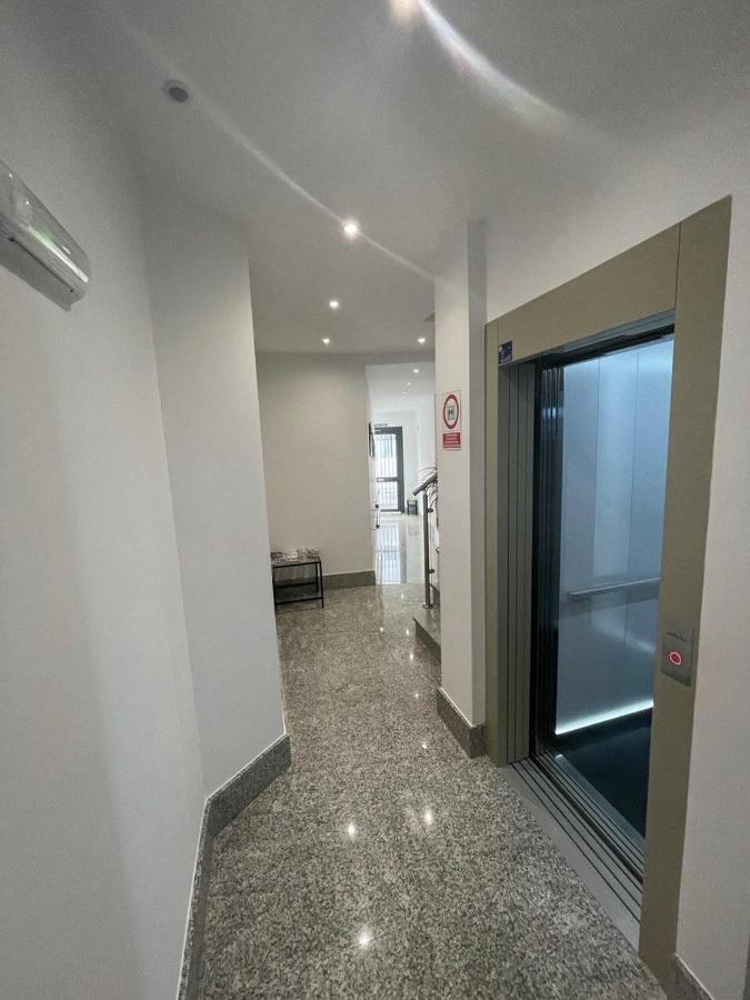 El edificio Gran8Nerja dispone de ascensor comunitario con parada en todos los niveles del edificio. La capacidad máxima del ascensor es hasta 400 kg. Si se excede el peso, el ascensor se bloqueará por seguridad, siendo necesario avisar a emergencias y esperar la visita del técnico para que lo desbloquee y