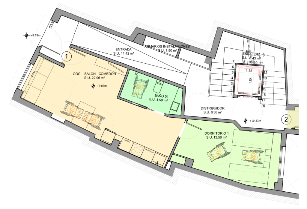 The Gran8Nerja building has an elevator with stops on all floors. Guests with reduced mobility can also enjoy the communal rooftop terrace and the gym in the basement.