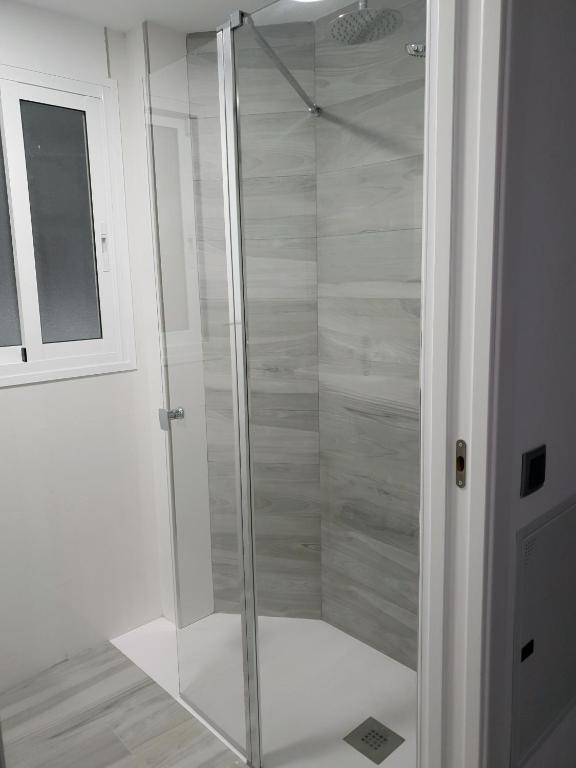CUARTO DE BAÑO: En el dormitorio (tipo suite). Ducha a ras de suelo con mamparas de cristal correderas, inodoro, lavabo y secador de pelo. Como cortesía de bienvenida habrá jabón neutro y papel higiénico.